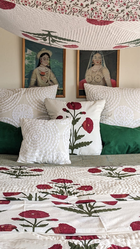 canvas cushion, solid block printed green 35 cm x 60 cm