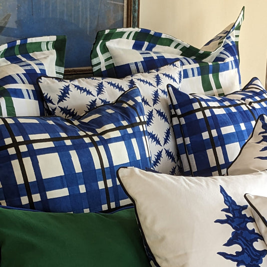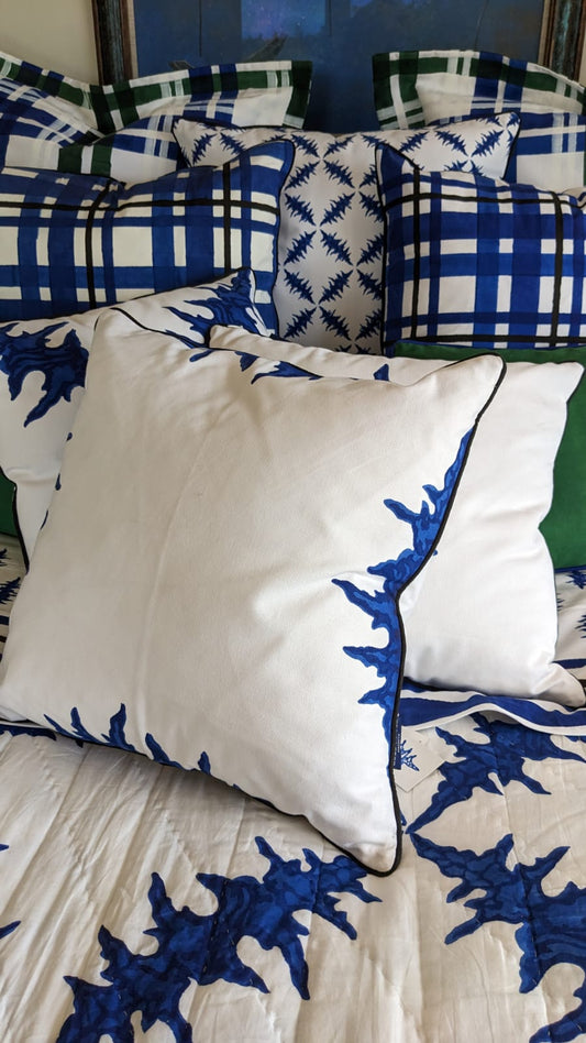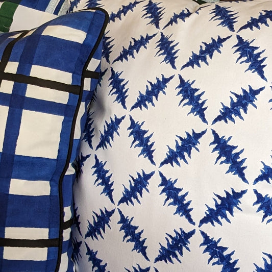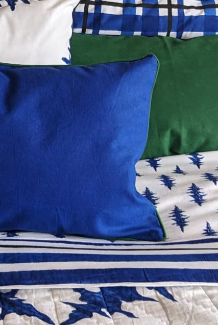 canvas cushion, solid block printed blue 35 cm x 60 cm